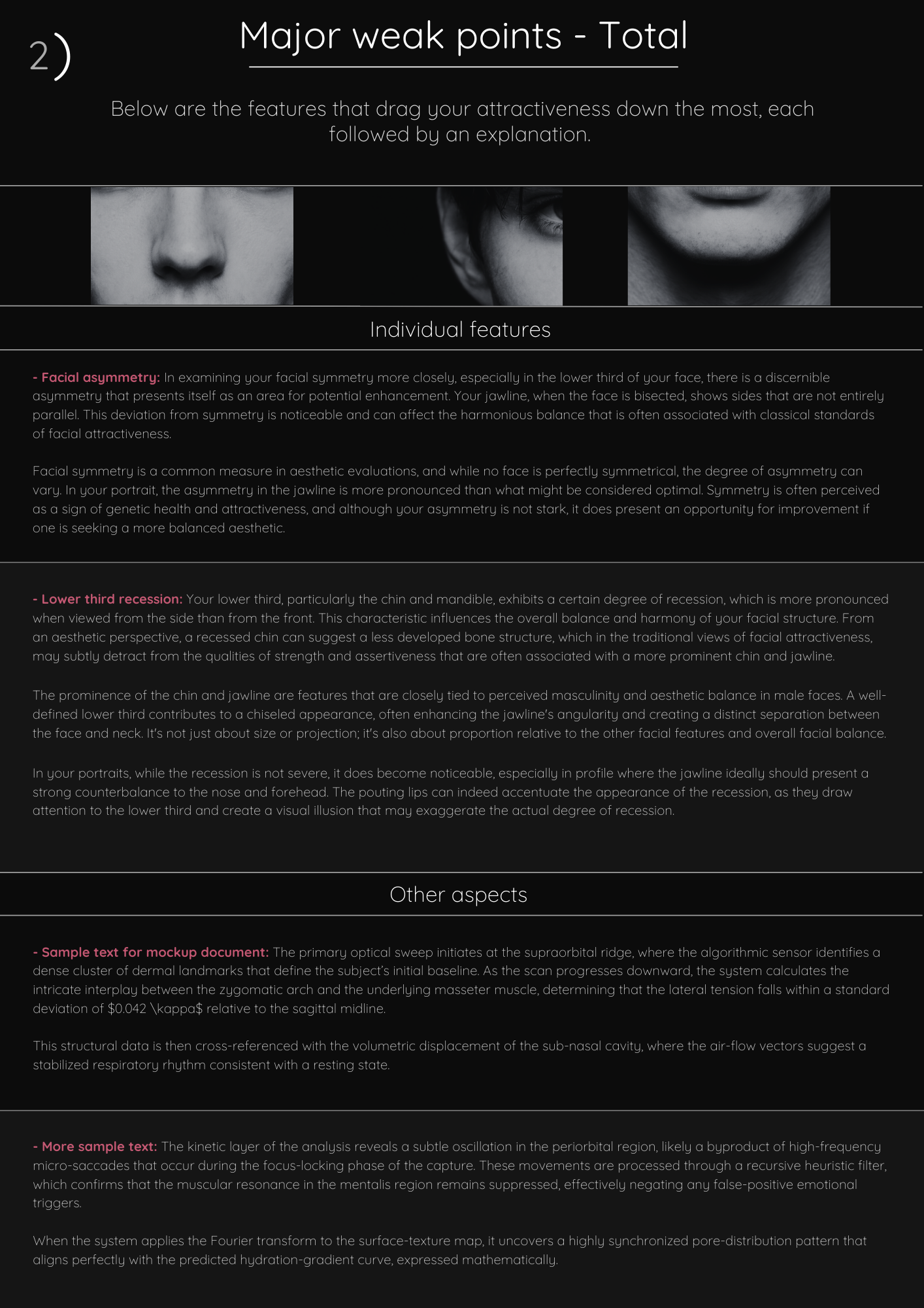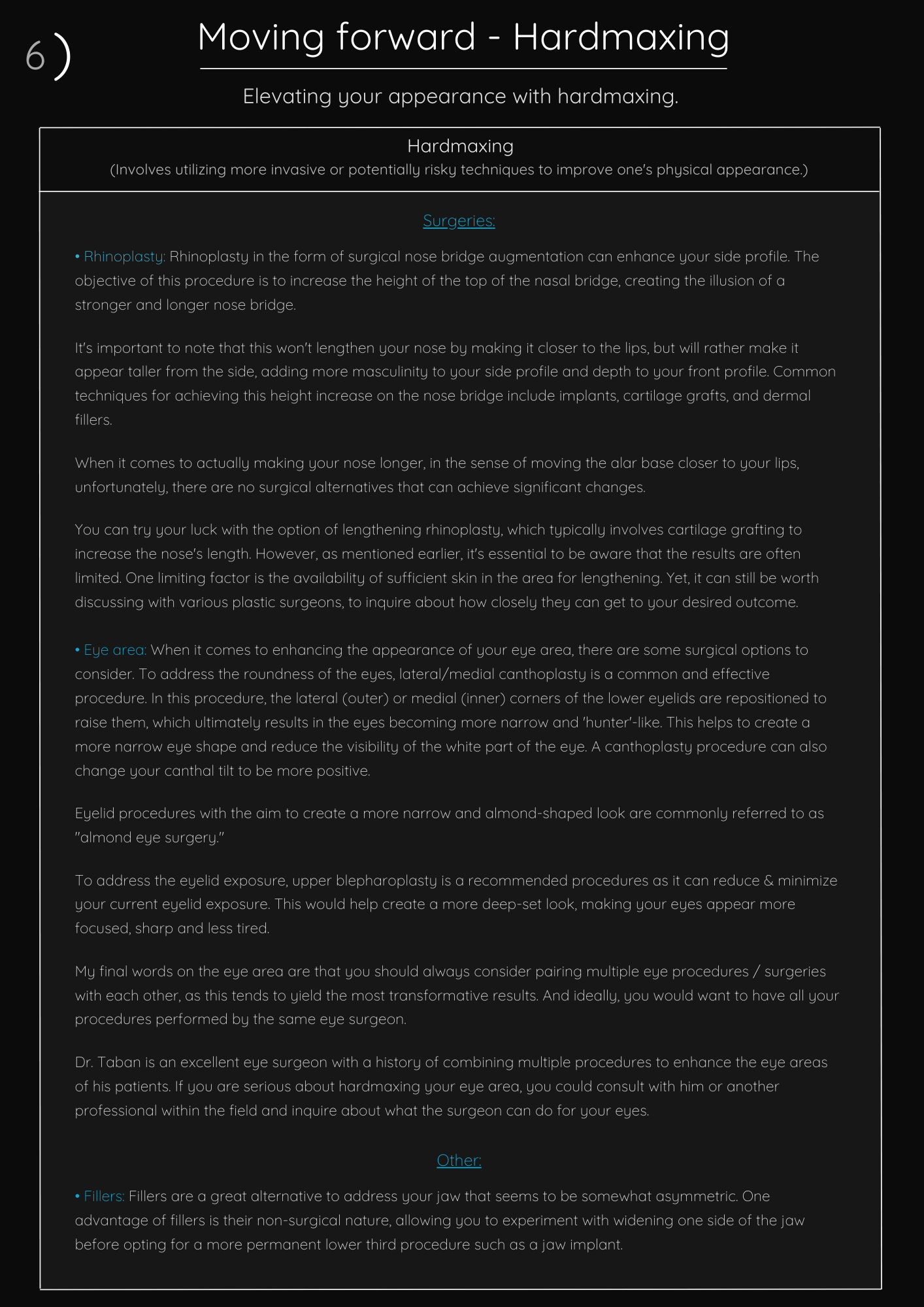 We work step by step as it’s the most effective approach. In month 1 we discuss how the first 1-2 targeted looksmaxes in your Action Plan went, ensuring we’re both on the same page before we move on to the next looksmaxes.