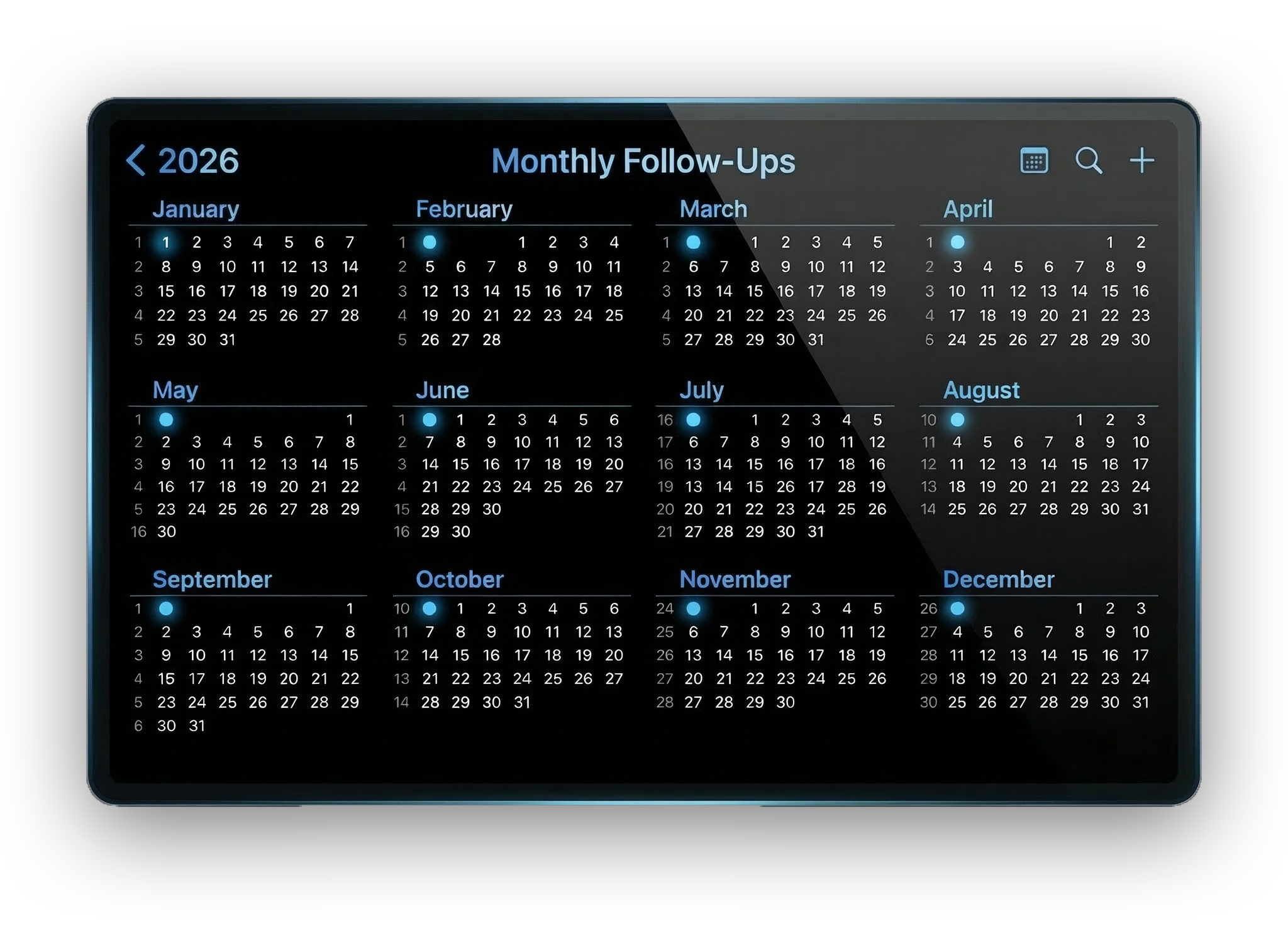 Monthly follow-ups are done in your preference, whether by chat or call. Whatever works best for you, with no pressure from our end.